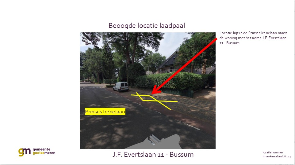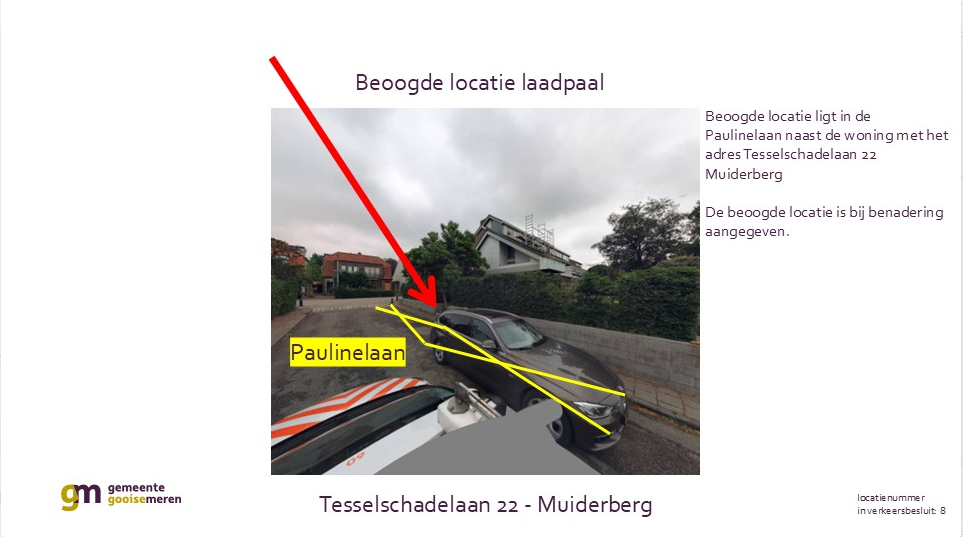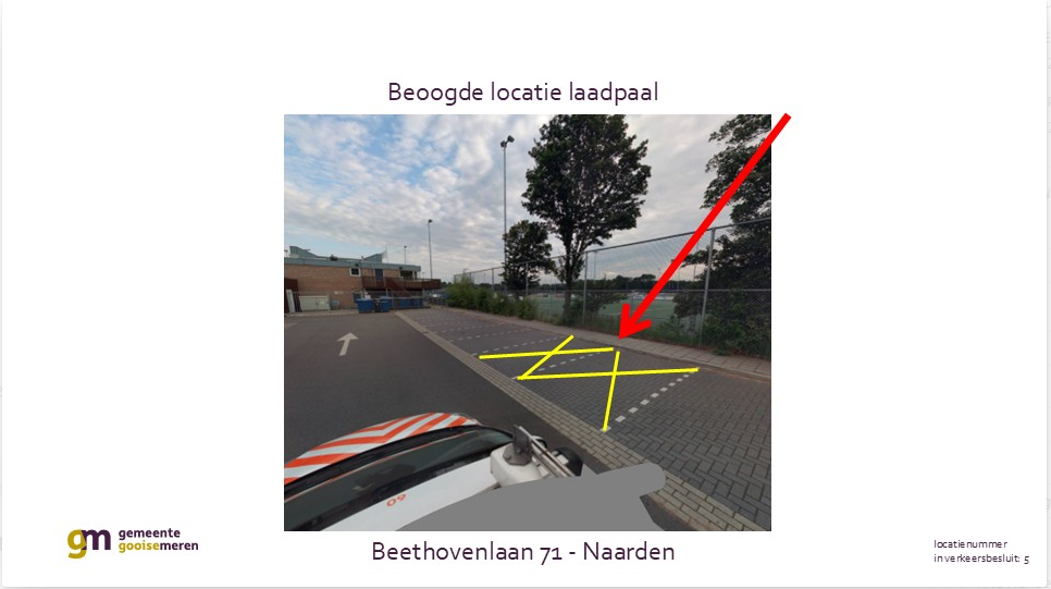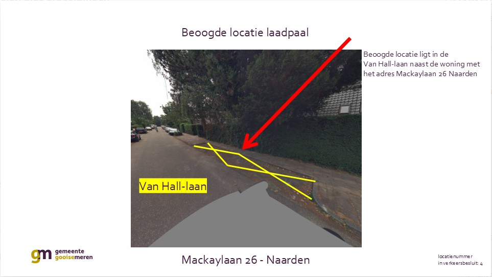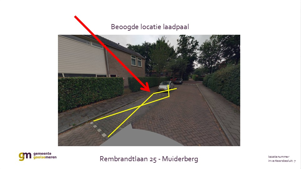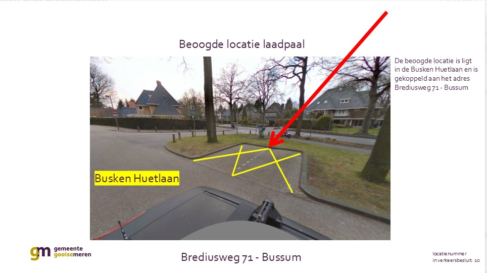 De gemeente Gooise Meren heeft naar aanleiding van verzoeken van (toekomstige) e-rijders (vraaggestuurd laden), op basis van het gebruik van bestaande laadpalen (datagestuurd laden) en op eigen initiatief (aanbodgestuurd laden) besloten om op een aantal locaties in de openbare ruimte parkeerplaatsen voor het laden van voertuigen te reserveren. Per beoogde locatie worden twee parkeerplaatsen voor het laden gereserveerd. Het laden vindt plaats door middel van een laadpaal.