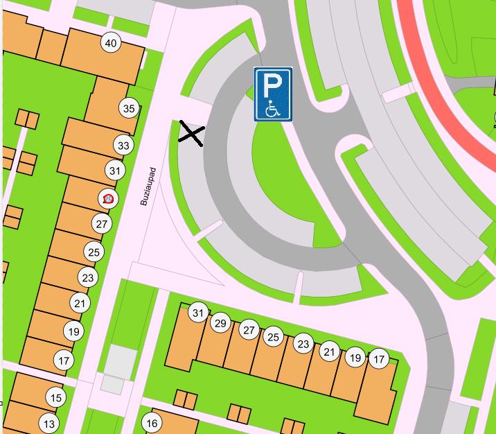Aanwijzen en inrichten van een gehandicaptenparkeerplaats op kenteken ten behoeve van het Buziaupad 29