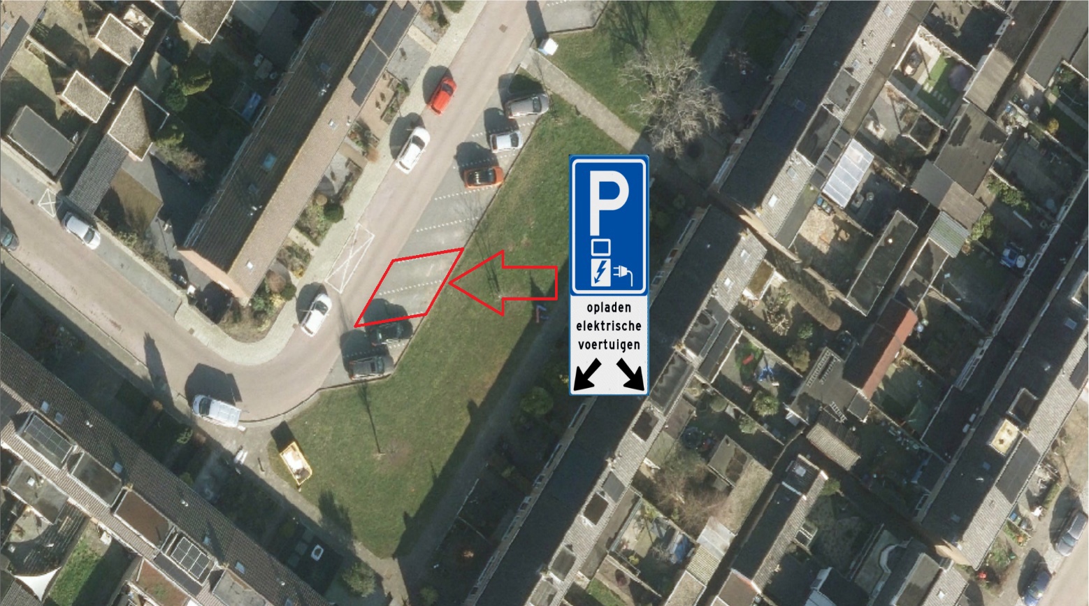 - dat dit gerealiseerd kan worden door middel van het plaatsen van het verkeersbord E8C van bijlage 1 van het RRV 1990 met een onderbord met de tekst ‘alleen opladen elektrische voertuigen’ en een onderbord dat aanduidt dat het verkeersbord van toepassing is op twee parkeervakken;