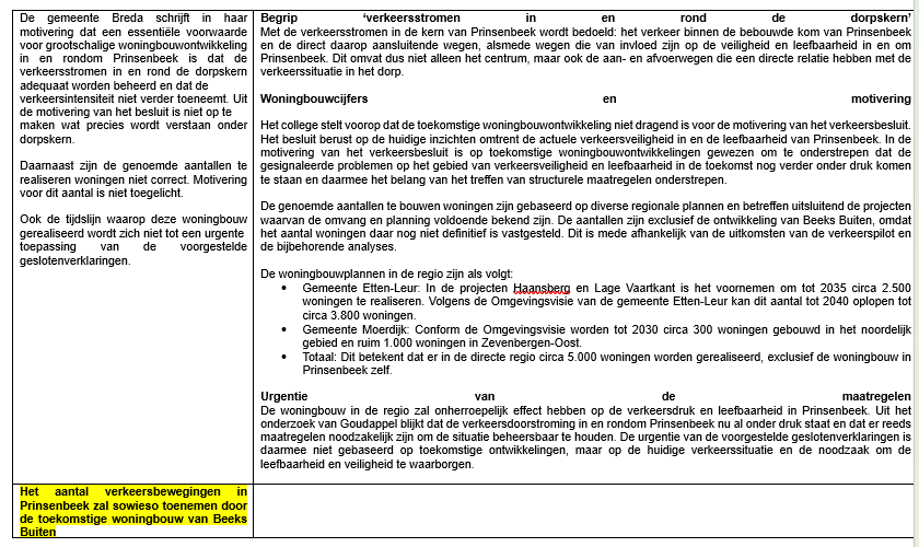 De verkeerssituatie in Prinsenbeek vraagt om directe en gerichte actie. Uit dagelijkse verkeersobservaties over de periode 2019–2025, gemeentelijke metingen (te raadplegen via www.Basec.nl), en het rapport Verkeersanalyse Beeks Buiten van Goudappel d.d. 12 april 2024 (hierna ook: ‘Goudappel 2024’), blijkt dat Prinsenbeek structureel kampt met een te hoge verkeersdruk. Deze druk leidt tot knelpunten op het gebied van verkeersveiligheid en leefbaarheid, en zal naar verwachting verder toenemen als gevolg van autonome groei en geplande woningbouw in de regio.