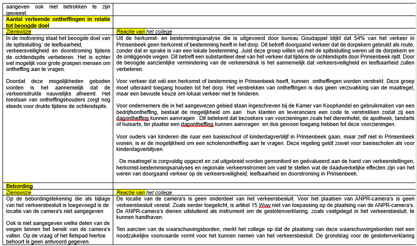 c. omschrijving van het besluit waartegen het bezwaarschrift gericht is: Verkeersbesluit ‘Instellen geslotenverklaringen voor motorvoertuigen, uitgezonderd lijnbussen, taxi’s en landbouwvoertuigen, in en rondom Prinsenbeek.’;