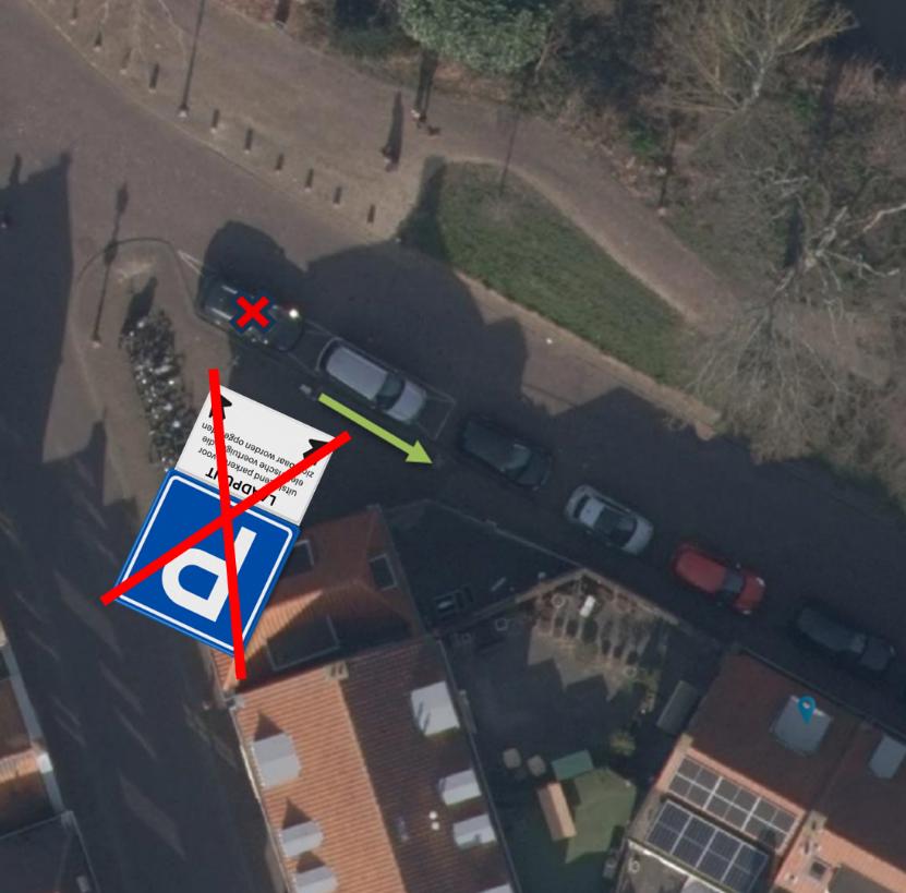 Verwijderen parkeerplaats en het verplaatsen van een laadpaal.
