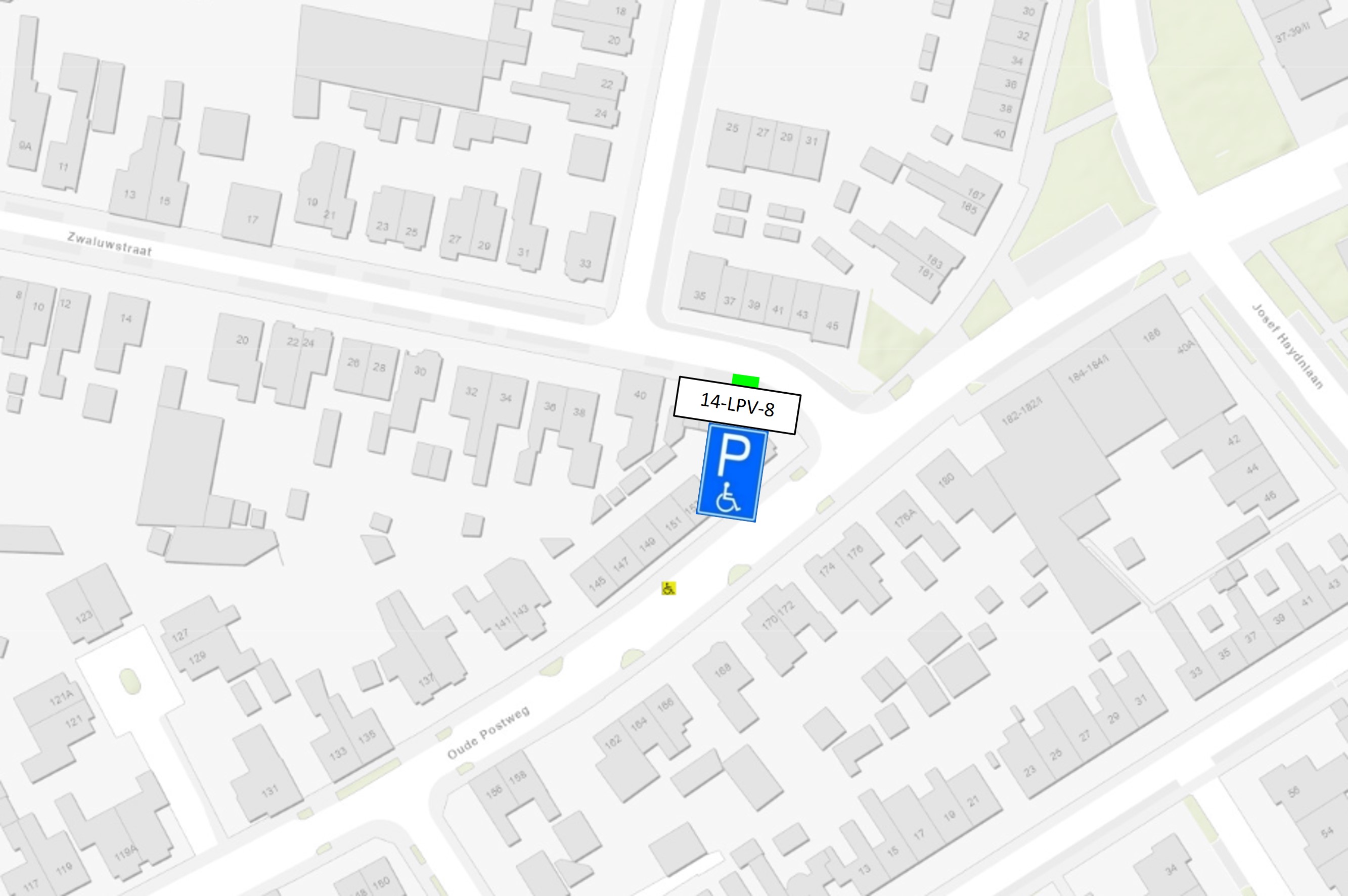 Het aanwijzen en inrichten van een gehandicaptenparkeerplaats op kenteken aan de Zwaluwstraat, ter hoogte van perceelnummer 42, door het plaatsen van het verkeersbord E6 van het RVV 1990 met onderbord met kenteken 14-LPV-8, zoals is aangegeven op de overzichtstekening in dit besluit.