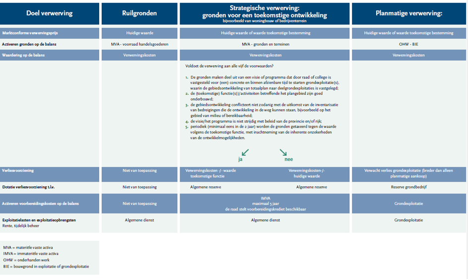 Onderstaand schema laat zien hoe de grondaankopen op de balans gewaardeerd mogen worden.