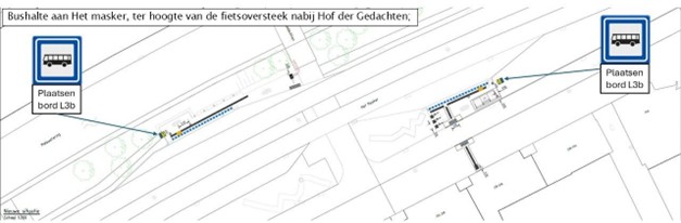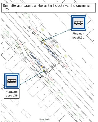 1. middels het plaatsen van verkeersbord L3b van bijlage 1 van het RVV 1990, bushaltes aan te wijzen op de volgende locaties: