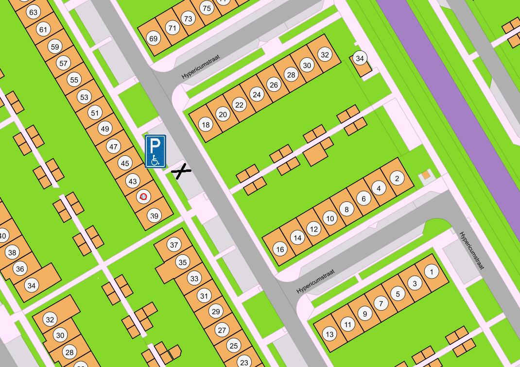 De afdeling Stadsruimte van de gemeente Almere heeft vanuit de afdeling Zorg & Welzijn een verzoek ontvangen voor het aanwijzen en inrichten van een gehandicaptenparkeerplaats op kenteken. De aanvraag voor de gehandicaptenparkeerplaats is ingediend en getoetst bij de afdeling Zorg & Welzijn. Na het toetsen van het recht op een gehandicaptenparkeerplaats heeft de desbetreffende wijkregisseur een plek aangewezen.