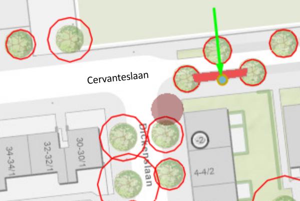 Cervanteslaan (ter hoogte van de zijgevel van Dickenslaan 2; wegvak tussen Dickenslaan en Calderónlaan)