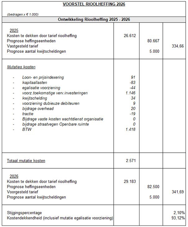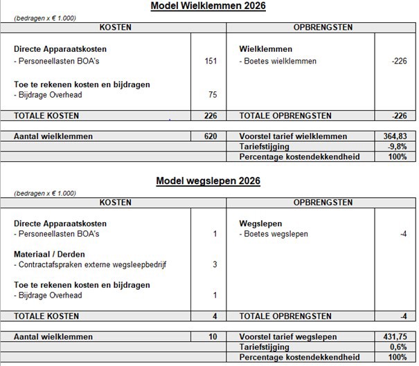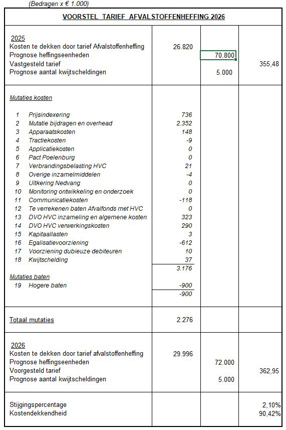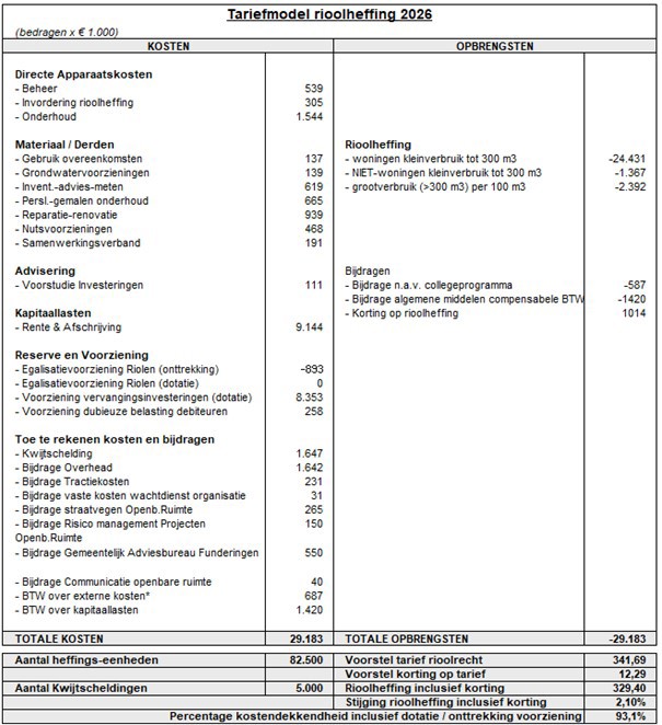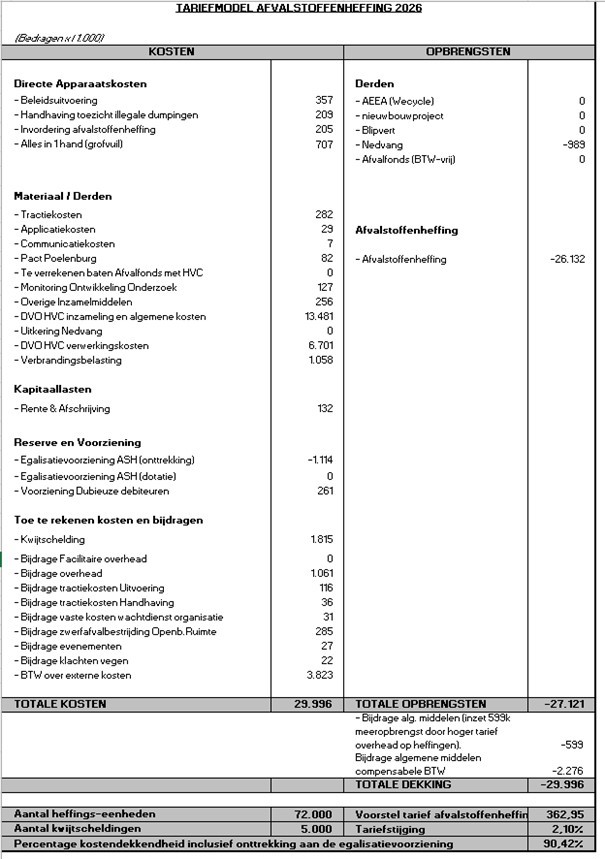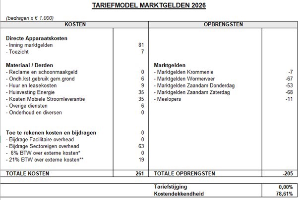 Kosten- tariefmodellen belastingen en rechten Zaanstad 2026