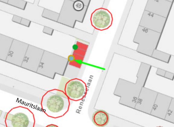 Renesselaan (ter hoogte van de zijkant van perceel Mauritslaan 34; wegvak tussen Lichtenberglaan en Mauritslaan)