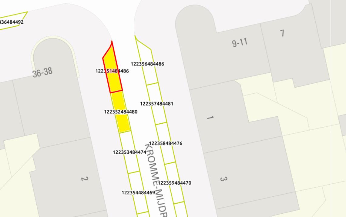 Twee parkeerplaatsen ter hoogte van perceel Kromme-Mijdrechtstraat 2 (parkeervaknummers 122351484486 en 122352484480) aan te wijzen voor het opladen van elektrische voertuigen door het plaatsen van een bord conform model E8c van Bijlage I van het RVV 1990, gecombineerd met onderbord OB504 met daarop afgebeeld twee pijlen op een hoek van 45° (RVV 1990).