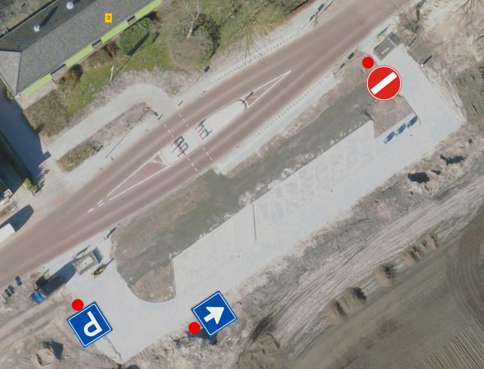 Door middel van het plaatsen van verkeersborden C2 en C3 uit bijlage 1 van het RVV 1990 een eenrichtingsweg in te stellen op het nieuw aangelegde parkeerterrein.