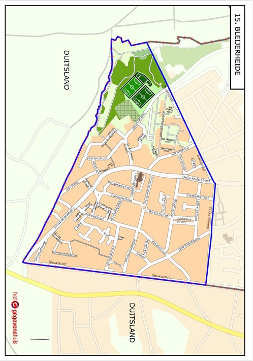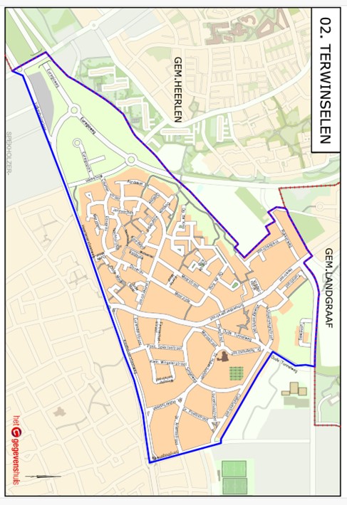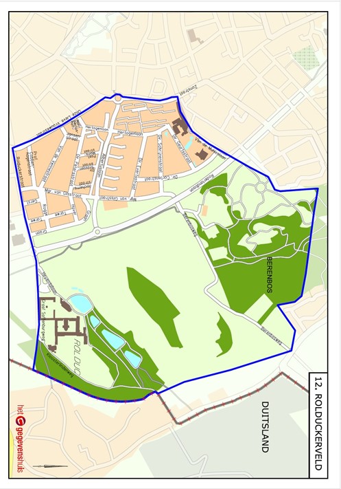 Het gebied, grofweg begrensd door de Directeur van der Mühlenlaan, Deken Deutzlaan, Esdoornstraat, de groenvoorziening tussen de achterzijde woningen Esdoornstraat en de achterzijde woningen Jac. Schreursstraat (Berenbos), achterzijde woningen Jac. Schreursstraat, achterzijde woningen Felix Ruttenstraat, Meuserstraat, Grensstraat, Kloosterlindenweg, Graaf Saffenburgweg, Rolduckerstraat, O.L. Vrouwestraat, Niersprinkstraat en Zonstraat.