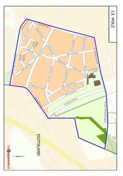 Het gebied, grofweg begrensd door de Rolduckerstraat, Graaf Saffenburgweg, groenvoorziening tussen de graaf Saffenburgweg en de grens met Duitsland, de grens met Duitsland, Nieuwstraat, Domaniale Mijnstraat, Reyserkuilenstraat, Kruisstraat en O.L. Vrouwestraat.