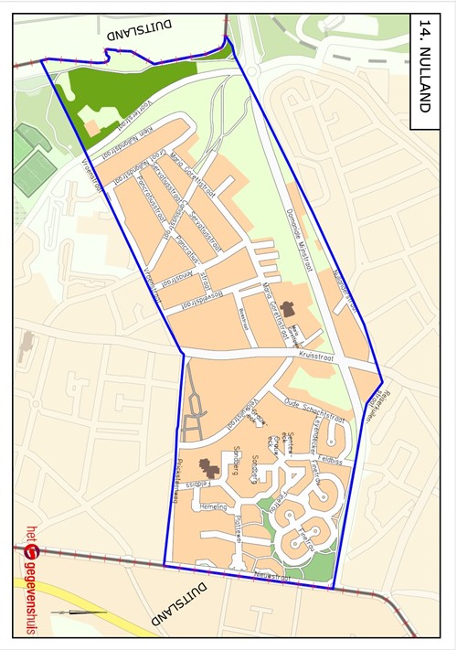 Het gebied, grofweg begrensd door de Hertenweide, Clausstraat, Niersprinkstraat, O.L. Vrouwestraat, Kruisstraat, Nullanderstraat, Domaniale Mijnstraat, groenvoorziening tussen de grens met Duitsland en de Hamstraat, groenvoorziening tussen de Hamstraat en het spoor, de spoorlijn, groenvoorziening tussen het spoor en de Vauputsweg, groenvoorzieing ten oosten van de N300, Kaalheidersteenweg, Kerkradersteen-weg, Brugmolenweg, groenvoorziening tussen Brugmolenweg en de spoorlijn Heerlen-Kerkrade Centrum, groenvoorziening tussen de spoorlijn Heerlen-Kerkrade Centrum en voetpad Stadspark, voetpad Stadspark en begrenzing tussen stadpark en achterzijde woningen.