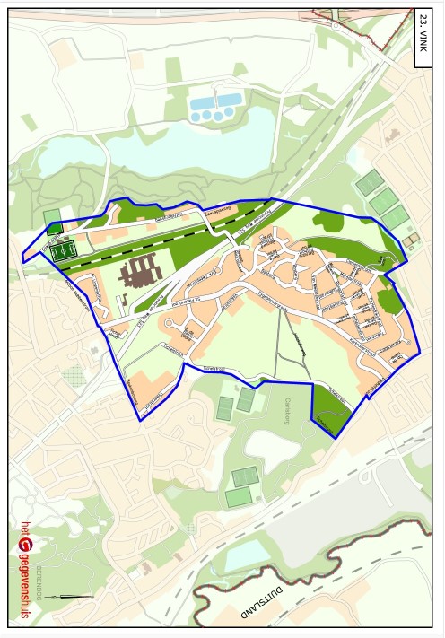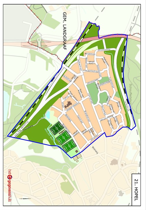Het gebied, grofweg begrensd door de Marialaan, achterzijde woningen Marialaan, Veldhofstraat, Haanraderstraat, Tichelstraat, Vinkerstraat, achterzijde woningen Vinkerstraat, Beukenbosweg, Antoon Hubbenstraat, terrein tussen Antoon Hubbenstraat en Kaffebergsweg (bij voetbalvelden VV Chevremont), achterzijde woningen Toupsbergstraat, groenvoorziening tussen achterzijde woningen Toupsbergstraat en veld VV Chevremont, achterzijde woningen Kaffebergsweg, Bosweidenweg, het Bergbos en de Bosweg.