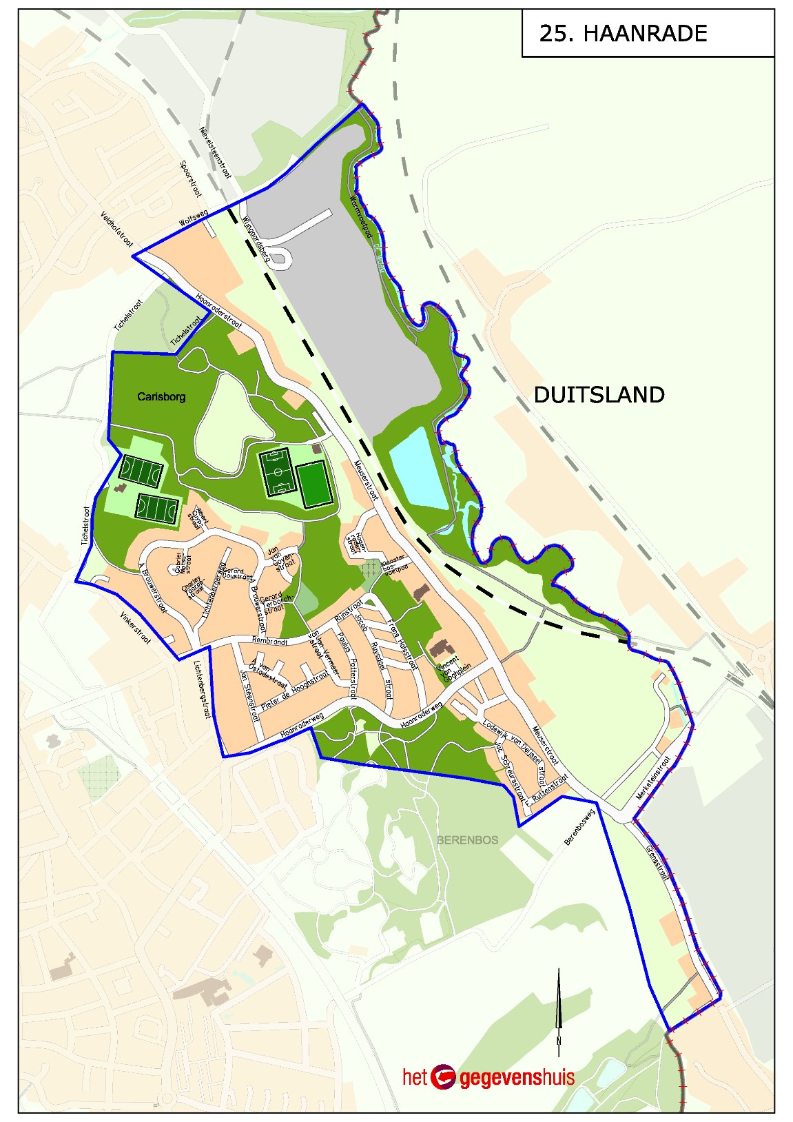 Het gebied, grofweg begrensd door de Wolfsweg, voetpad in verlengde van Wolfsweg, de grens met Duitsland (rivier de Worm), Merksteinstraat, Grensstraat, Kloosterlindenweg, groenvoorziening tussen de Kloosterlindenweg en de Meuserstraat (Berenbos), Meuserstraat, achterzijde woningen Felix Ruttenstraat, achterzijde woningen Jac.Schreursstraat, groenvoorziening tussen achterzijde woningen Jac.Schreursstraat en achterzijde woningen Esdoornstraat (Berenbos), achterzijde woningen Esdoornstraat, Haanraderweg, Lichtenbergstraat, Beukenbosweg, Vinkersstraat, Tichelstraat en Haanraderstraat.
