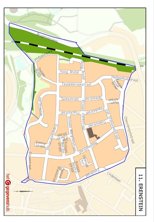 Het gebied, grofweg begrensd door de spoorlijn, groenvoorziening tussen Torenstraat en Schouffertsweide, achterzijde woningen Schweitzerstraat, achterzijde woningen Juliastraat, westelijke zijde tennisvelden TCLE, het Bergbos, de spoorlijn en de N300.