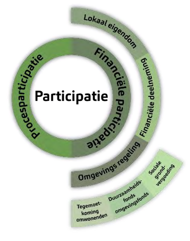 Financiële participatie: De mogelijkheid om financieel deel te nemen aan het project, of op een andere manier profijt te hebben van een tegemoetkoming. Bijvoorbeeld in de vorm van financiële obligaties, eigendomsparticipatie, een omgevingsfonds of combinatie hiervan.