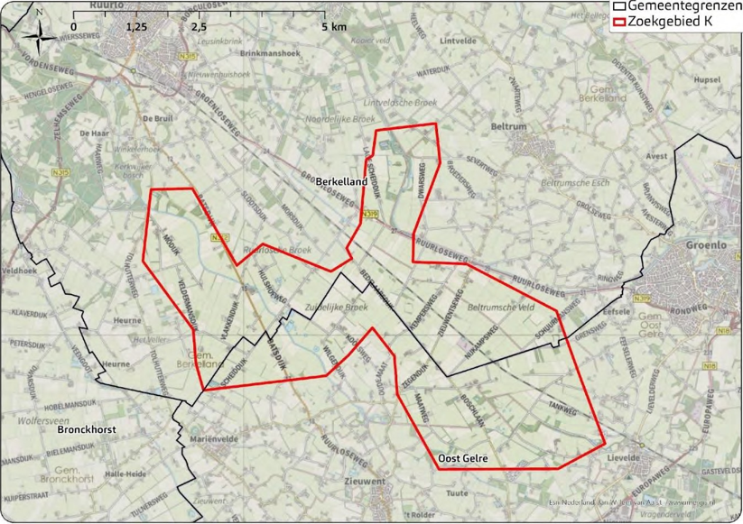 Figuur 2. Zoekgebied K, gelegen in gemeente Berkelland en Oost Gelre (bron: Bosch & van Rijn, 2022).
