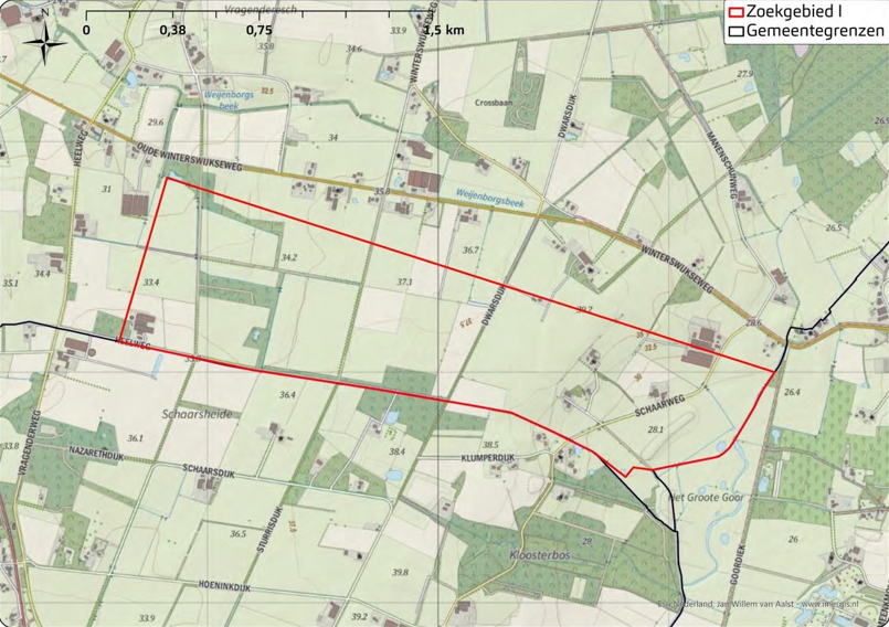 Zoekgebied I is gelegen rond de gemeentegrenzen Oost Gelre – Aalten – Winterswijk en ten noorden van Bredevoort. Hieronder is de ligging van zoekgebied I te zien.