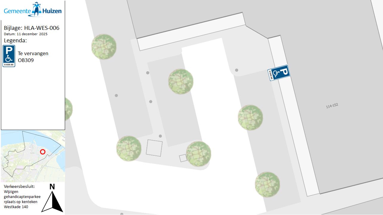 Verkeersbesluit gehandicaptenparkeerplaats wijzigen op kenteken Westkade 140 te Huizen