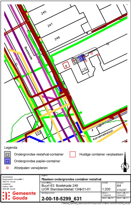 Het college van burgemeester en wethouders van Gouda is van plan om op een locatie in Gouda een ondergrondse papiercontainer te plaatsen.