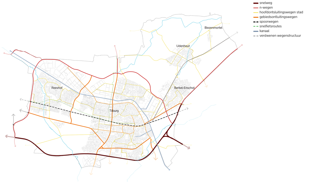 De ringbanen rondom de oude stad zijn door Ir. Ruckert in 1917 als één structuur ontworpen maar vervolgens in verschillende tijdslagen aangelegd. Mede hierdoor hebben de verschillende delen van de Ringbaan eigen identiteiten gekregen. Zo zijn de noord- en oostzijde van de ringbaan vormgegeven als een versteende stadsstraat en is ringbaan Zuid ontwikkeld als een parklaan; een groene as die autonoom door de stad loopt. De Midden-Brabantweg vormt een lange lommerrijke verbindingsweg van noord naar zuid en sluit aan op de westelijke ringbaan. Aan de noordzijde van de stad is de N260 als een los element in het open landschap opgenomen.