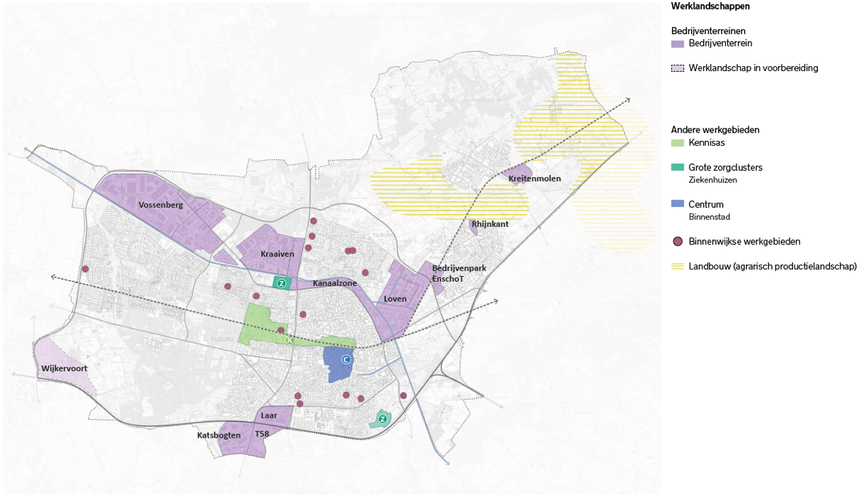 Naast de grote gebiedsontwikkelingen spelen er in Tilburg forse ontwikkelingen op bedrijventerreinen en in de werkgebieden. De ruimte is schaars en als gevolg daarvan spelen er veel ruimtelijke ontwikkelingen op en rondom zowel de binnenstedelijke werkgebieden als de gemengde en meer grootschalige bedrijventerreinen. We hebben de ambitie om bij deze ontwikkelingen te sturen op een goede omgevingskwaliteit.