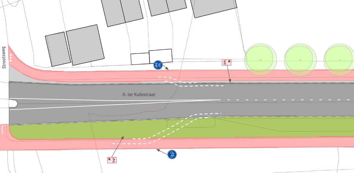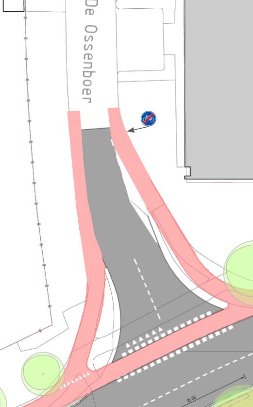 dat ook de kruispuntaansluiting van De Ossenboer op de H. ter Kuilestraat wordt heringericht zodat ook daar voor fietsers een logische en goed berijdbare aansluiting op de verplichte fietspaden ontstaat;