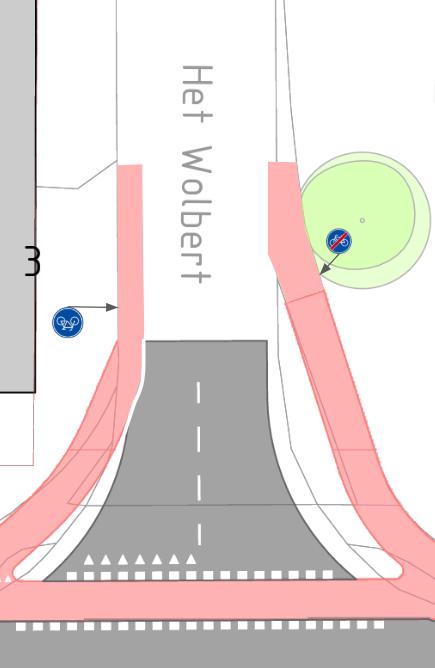 dat eveneens de kruispuntaansluiting van Het Wolbert op de H. ter Kuilestraat wordt heringericht zodat voor fietsers een logische en goed berijdbare aansluiting in de vorm van verplichte fietspaden ontstaat;