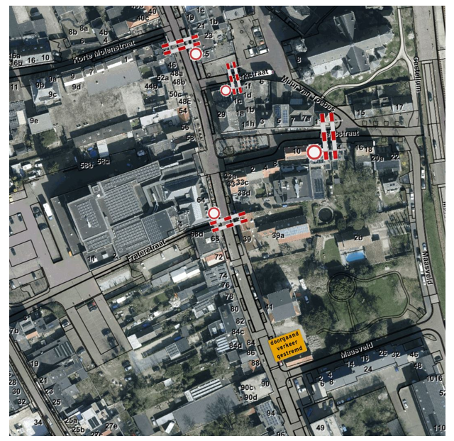 Het afsluiten van Grotestraat en Maasstraat te Cuijk middels bebording te plaatsen van bijlage 1 van het Reglement Verkeersregels en Verkeerstekens 1990 volgens model C1, van 18 december 2025 12:00 uur tot en met 22 december 2025 20:00 uur.