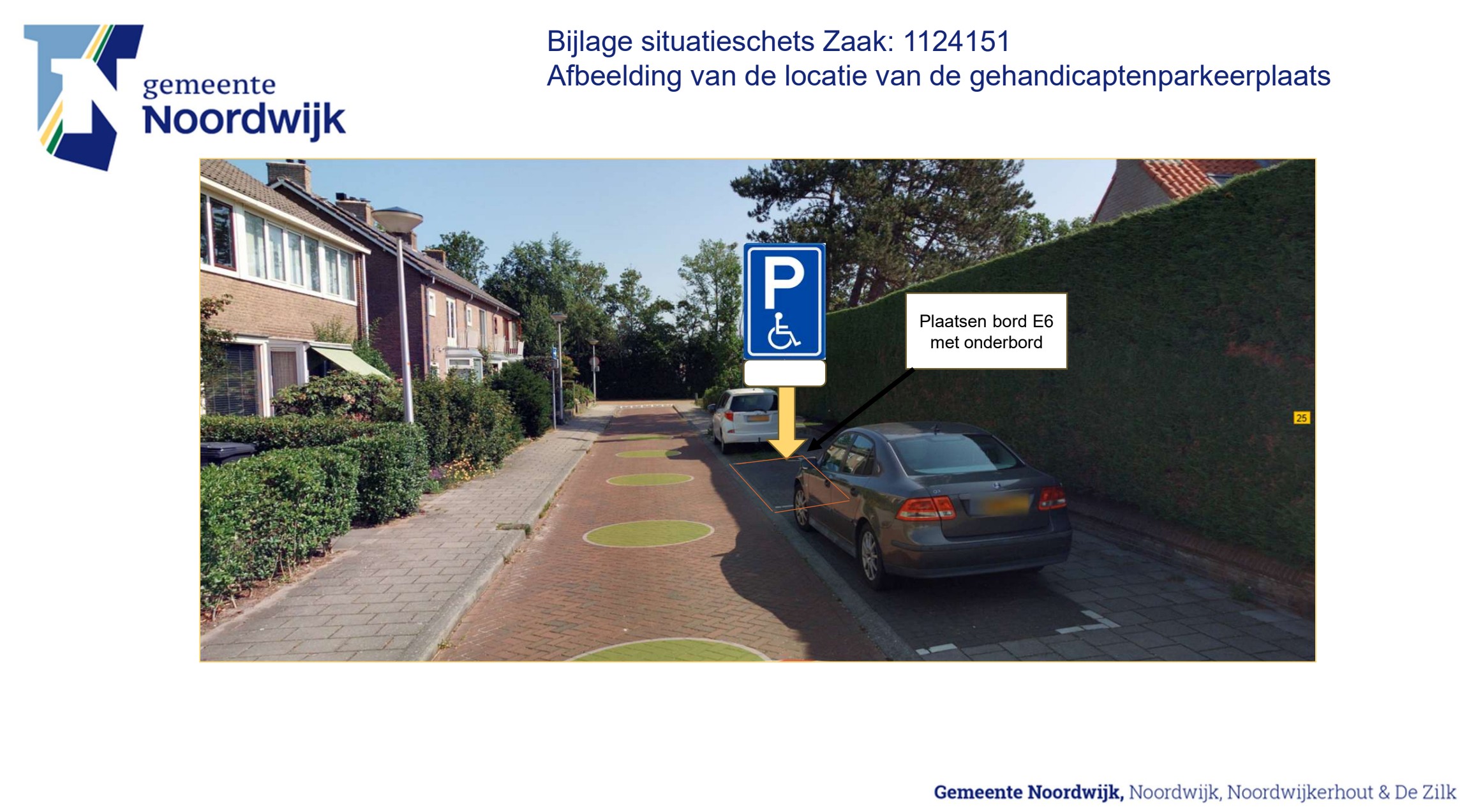 - De aanvraag is gedaan voor een gehandicaptenparkeerplaats op een (deel van) een binnen de bebouwde kom gelegen weg, die in eigendom, beheer en onderhoud is van de gemeente Noordwijk;