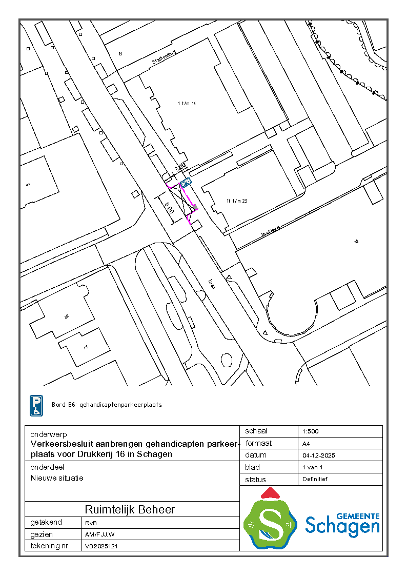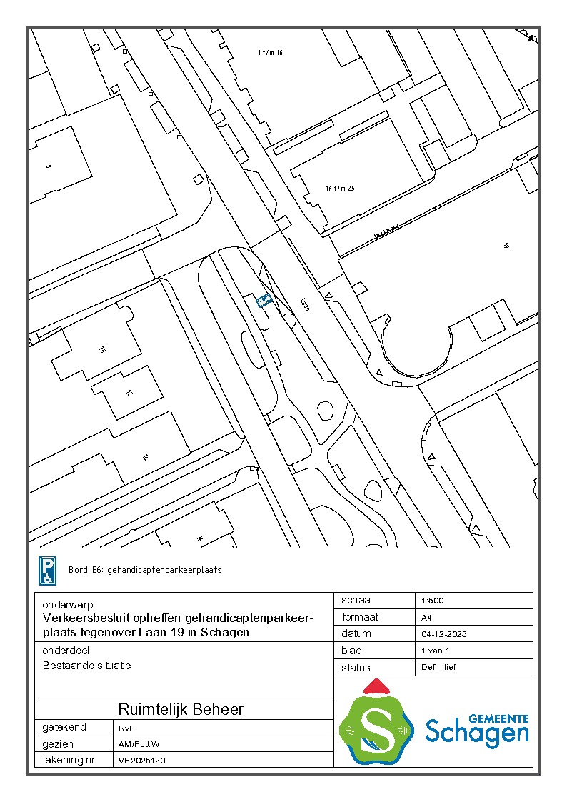 Gemeente Schagen- Verkeersbesluit verplaatsen algemene gehandicaptenparkeerplaatsen op de Laan, Schagen.