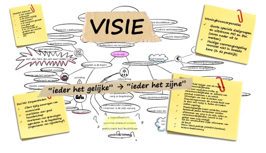 De leidende principes binnen het convenant zijn uitgewerkt in een zestal werkpakketten. De uitwerking van deze werkpakketten, samen met alle input vanuit de in 2020 en 2021 gestarte projecten ‘Juiste ondersteuning op de juiste plek’ en ‘huisvesting en voorkomen van dakloosheid’ zijn gebruikt voor het opstellen van deze regiovisie. De regiovisie is het resultaat van een intensief lopend traject waarin diverse bijeenkomsten en workshops zijn georganiseerd met vertegenwoordigers van gemeenten, zorg- en welzijnsaanbieders, woningcorporaties, het Zorg- en Veiligheidshuis, gemeenteraden en cliëntraden uit de regio. Ook is deze regiovisie voorgelegd aan de adviesraden en wmo-raden in de regio.