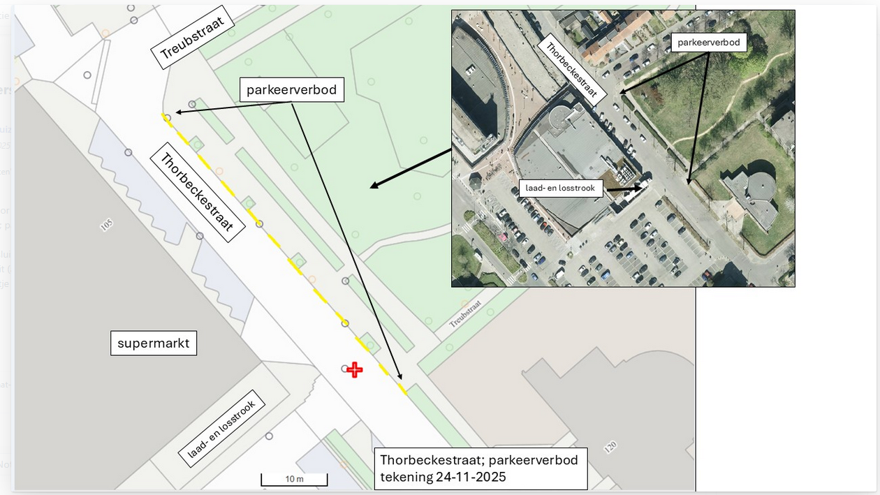 dat er meer ruimte voor het laden en lossen ontstaat als er aan de noordoostzijde van de Thorbeckestraat tussen de Treubstraat en het punt ca. 50 meter ten zuidoosten van de Treubstraat geen voertuigen worden geparkeerd;