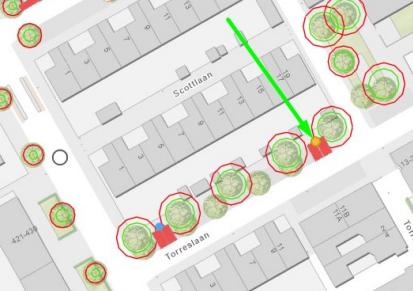 Torreslaan (ter hoogte van de achterzijde van perceel Scottlaan 17; aan linkerzijde van het wegvak tussen Columbuslaan en Torreshof)