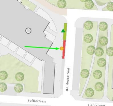 Kariboestraat (tegenover huisnummer 55; wegvak tussen Baden-Powellweg en Saffierlaan)