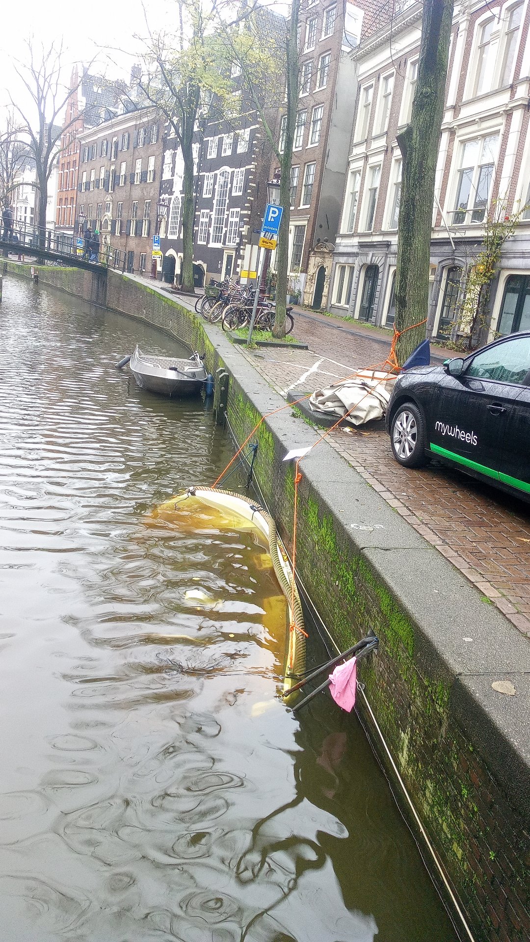 Mededeling opruimen gezonken vaartuig volgens de Wrakkenwet aan Oudezijds Voorburgwal 280 te Amsterdam