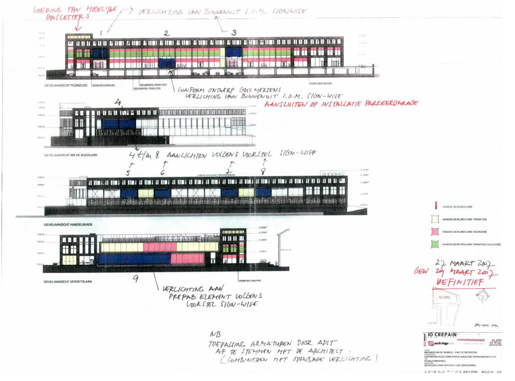 In dat geval kan in overleg met de gemeente een samenhangend reclame-ontwerp gemaakt worden dat op het gebouw is afgestemd. Eventueel wordt het plan voorgelegd aan de Planadviesraad.