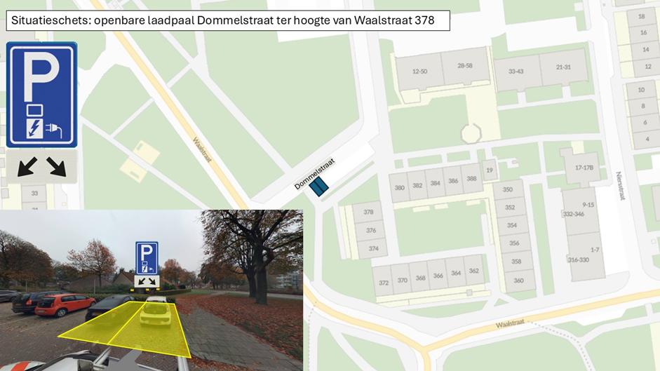 dat op basis van de hiervoor genoemde beleidsregel en de plankaart laadinfrastructuur een geschikte locatie is gevonden voor een laadvoorziening op de Dommelstraat ter hoogte van Waalstraat 378;