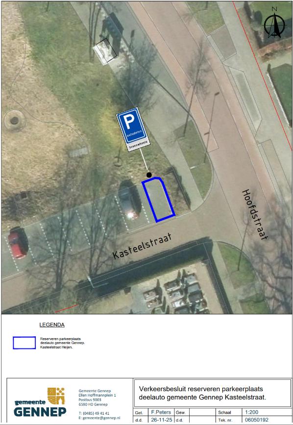 AANWIJZEN PARKEERPLAATS VOOR DEELAUTO GEMEENTE GENNEP KASTEELSTRAAT HEIJEN