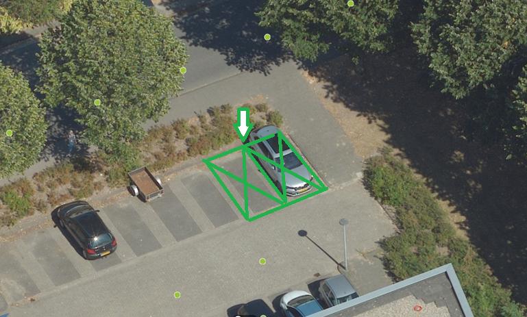 De parkeerplaatsen zijn alleen bedoeld voor het opladen van elektrische auto’s. Daarom plaatsen we het verkeersbord E08c (dit staat in bijlage I van het RVV 1990). We plaatsen ook het verkeersbord OB504 daaronder. Dit is een bord met twee pijlen die wijzen naar de parkeerplaatsen.