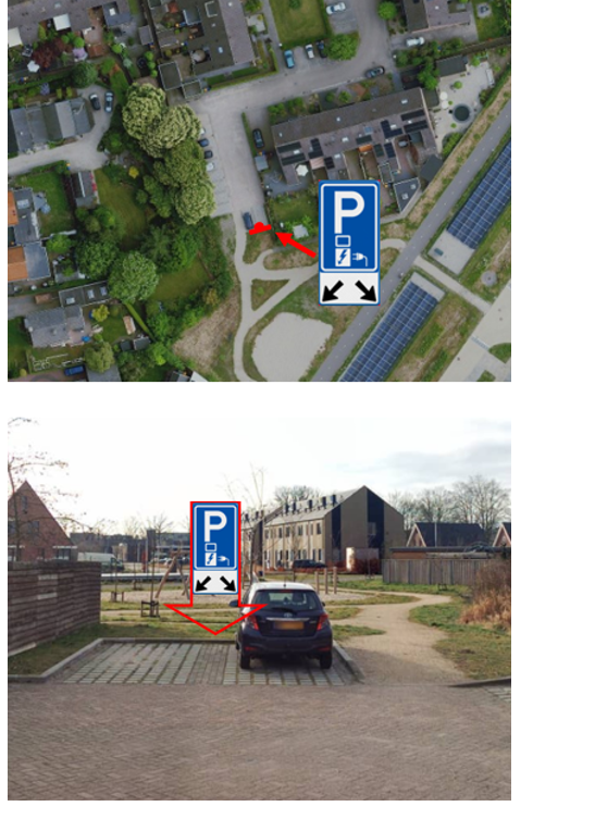 Dit wordt gerealiseerd door middel van het plaatsen van het verkeersbord E8c met een onderbord dat aanduidt dat het verkeersbord van toepassing is op twee parkeervakken. Het exclusief parkeren voor elektrische voertuigen is daarbij slechts toegestaan met als doel het voertuig op te laden, zodat het oplaadpunt voor meerdere gebruikers beschikbaar is. Dit gebruik is geregeld in artikel 24, lid 1, sub d ten 2e van het RVV 1990: ‘de bestuurder mag zijn voertuig niet parkeren op een parkeergelegenheid op een andere wijze of met een ander doel dan op het bord of op het onderbord is aangegeven’.