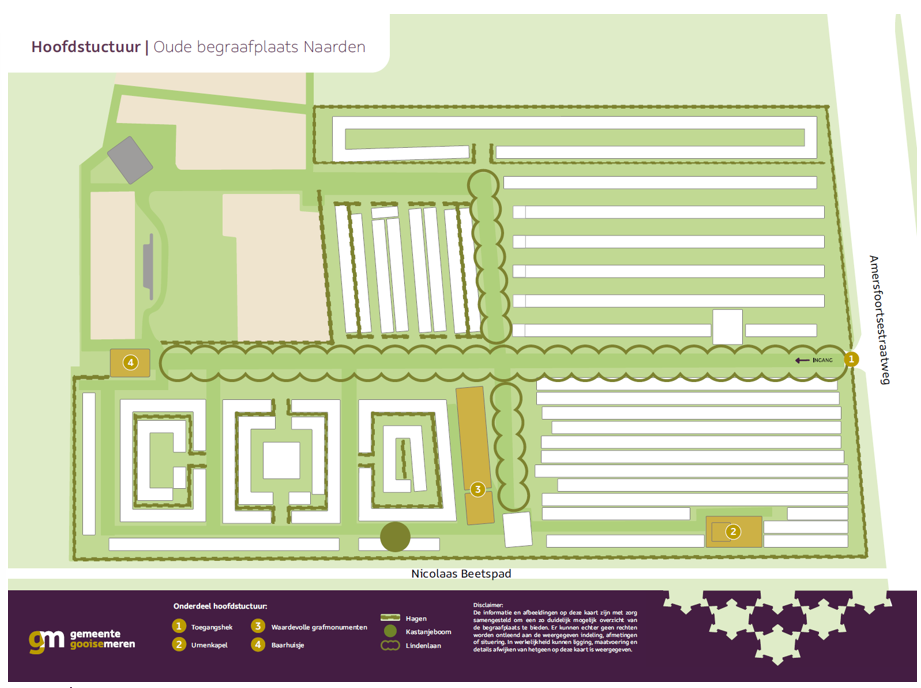 Op de begraafplaatsen in Gooise Meren wordt al eeuwenlang afscheid genomen van dierbare overledenen. De wijze is voortdurend aan verandering onderhevig. Begraafplaatsen zijn cultuurdragers en geven maatschappelijke ontwikkelingen, zoals religieuze denkbeelden en plaatselijke ontwikkelingen weer. Daarnaast kennen nogal wat begraafplaatsen een parkachtig karakter met bijzondere bomen en heesters. Onderling verschillen ze sterk van karakter. De begraafplaatsen komen voort uit de kernen van Gooise Meren en tegelijkertijd versterken ze de identiteit van deze kernen. Deze notitie heeft betrekking op de Oude Begraafplaats van Naarden.