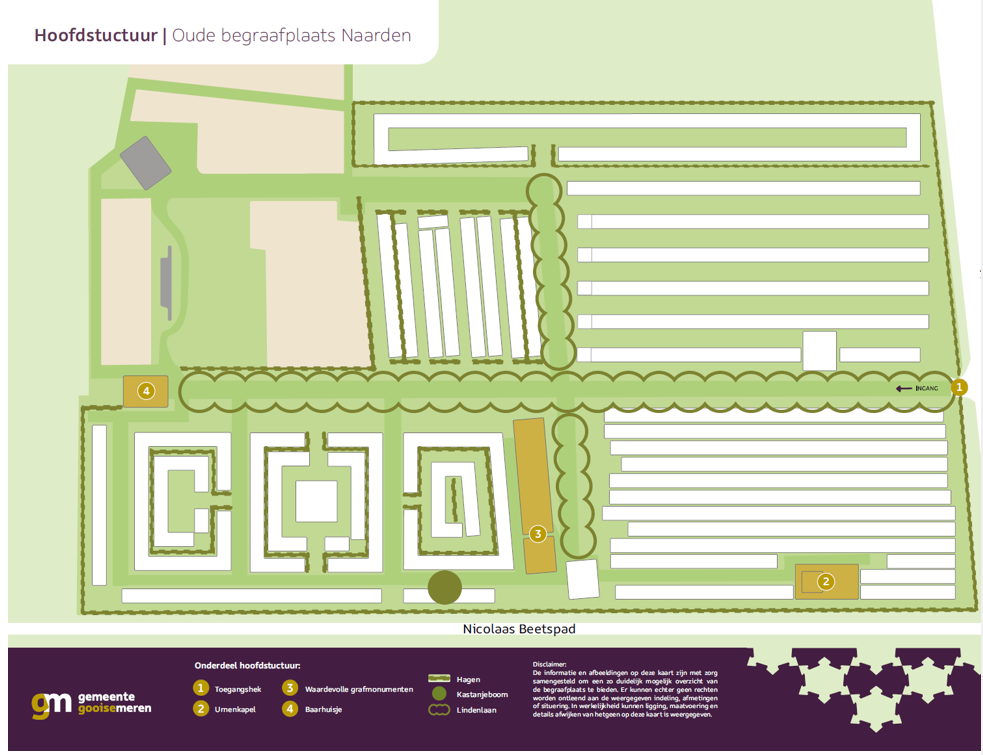 De Oude Begraafplaats Naarden is als enige gemeentelijke begraafplaats in Gooise Meren in z’n geheel aangewezen als Rijksmonument. In dit hoofdstuk volgen de belangrijkste aandachtspunten hierbij.