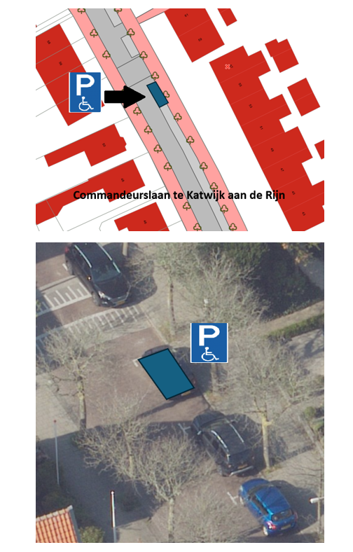 Het college van burgemeester en wethouders van de gemeente Katwijk nemen een verkeersbesluit voor het aanwijzen van een gereserveerde gehandicaptenparkeerplaats. Onlangs is een aanvraag ingediend om ter hoogte van Commandeurslaan 57 te Katwijk aan den Rijn een gereserveerde gehandicaptenparkeerplaats aan te leggen. Om ervoor te zorgen dat de parkeerplaats alleen gebruikt kan worden door de begunstigde, is gemeente voornemens om bebording te plaatsen die aangeeft dat de nabijgelegen parkeerplaats alleen gebruikt mag worden voor het parkeren van het voertuig met het op het onderbord vermelde kenteken