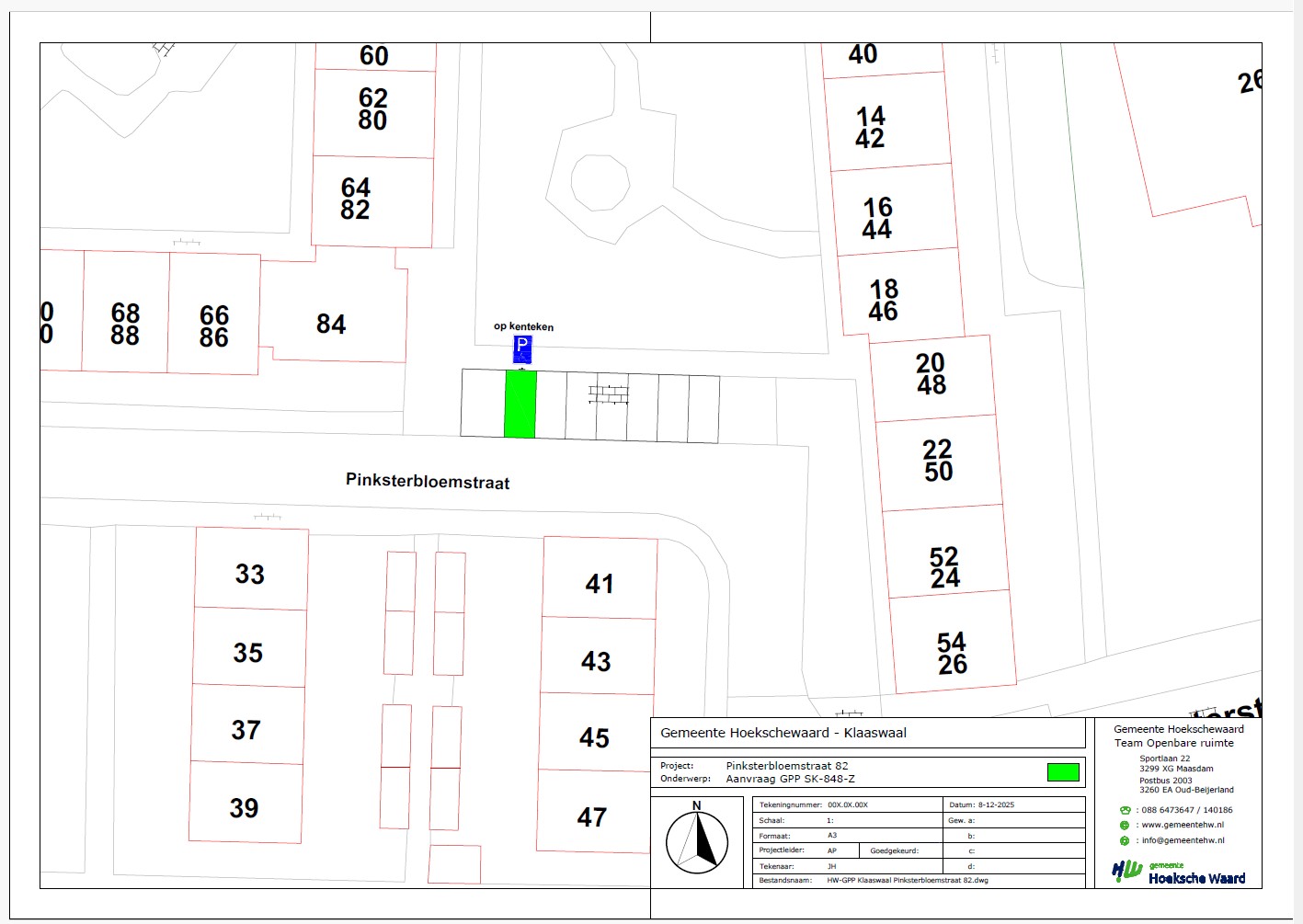 Realisatie gehandicaptenparkeerplaats op kenteken Pinksterbloemstraat thv 82 Klaaswaal