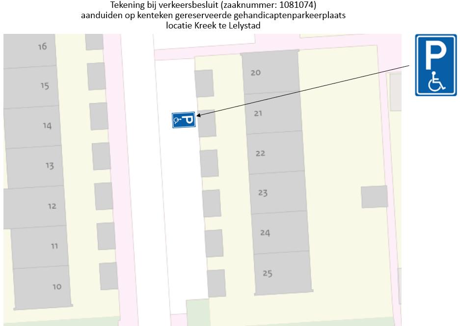 Verkeersbesluit aanduiden op kenteken gereserveerde gehandicaptenparkeerplaats locatie Kreek te Lelystad