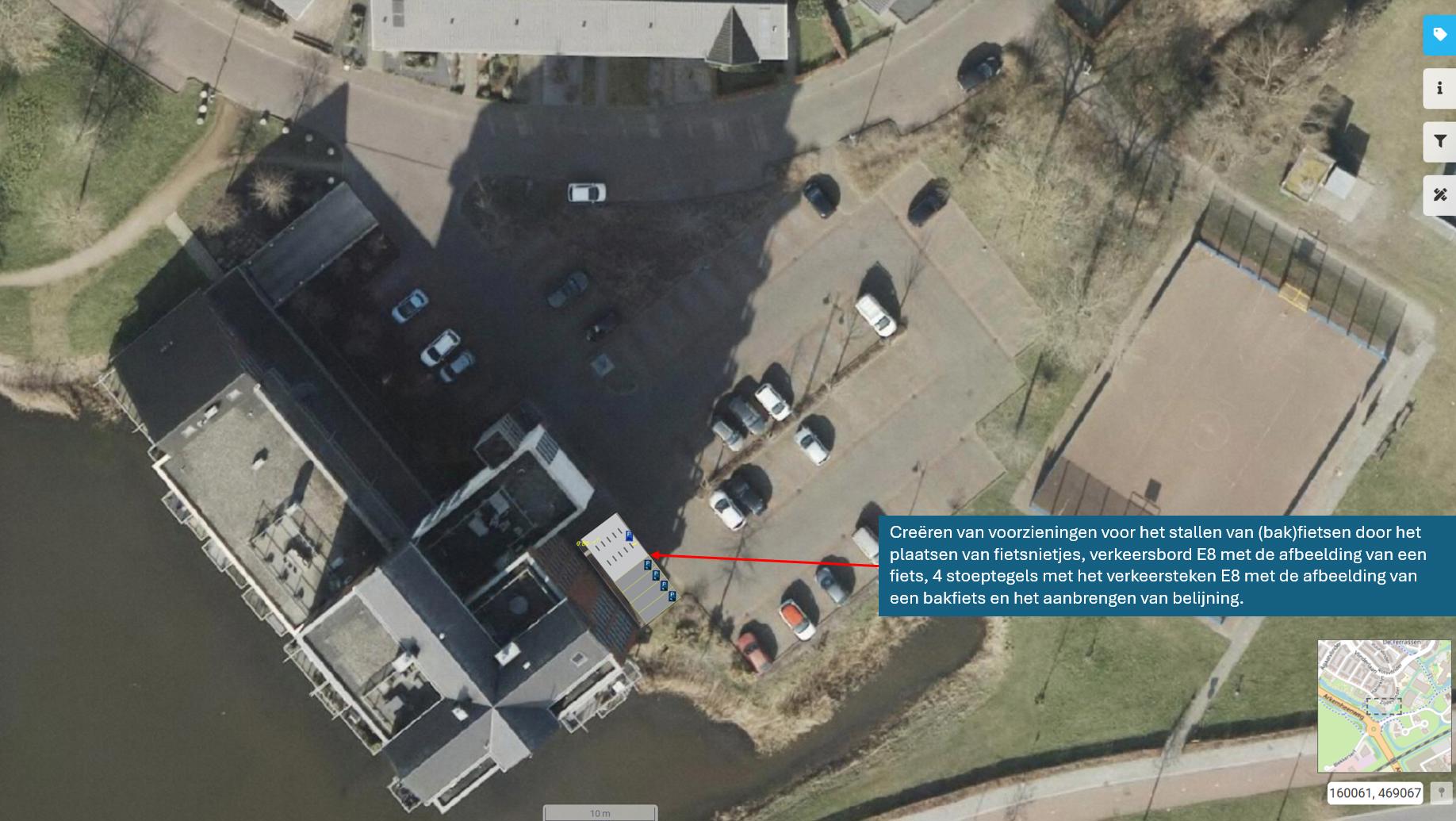 Het creëren van een voorziening voor het stallen van (bak)fietsen door het plaatsen van de verkeerstekens E8 met de afbeelding van een fiets en E8 met de afbeelding van een bakfiets uit bijlage 1 van het RVV 1990, overeenkomstig de bij dit besluit behorende situatietekening