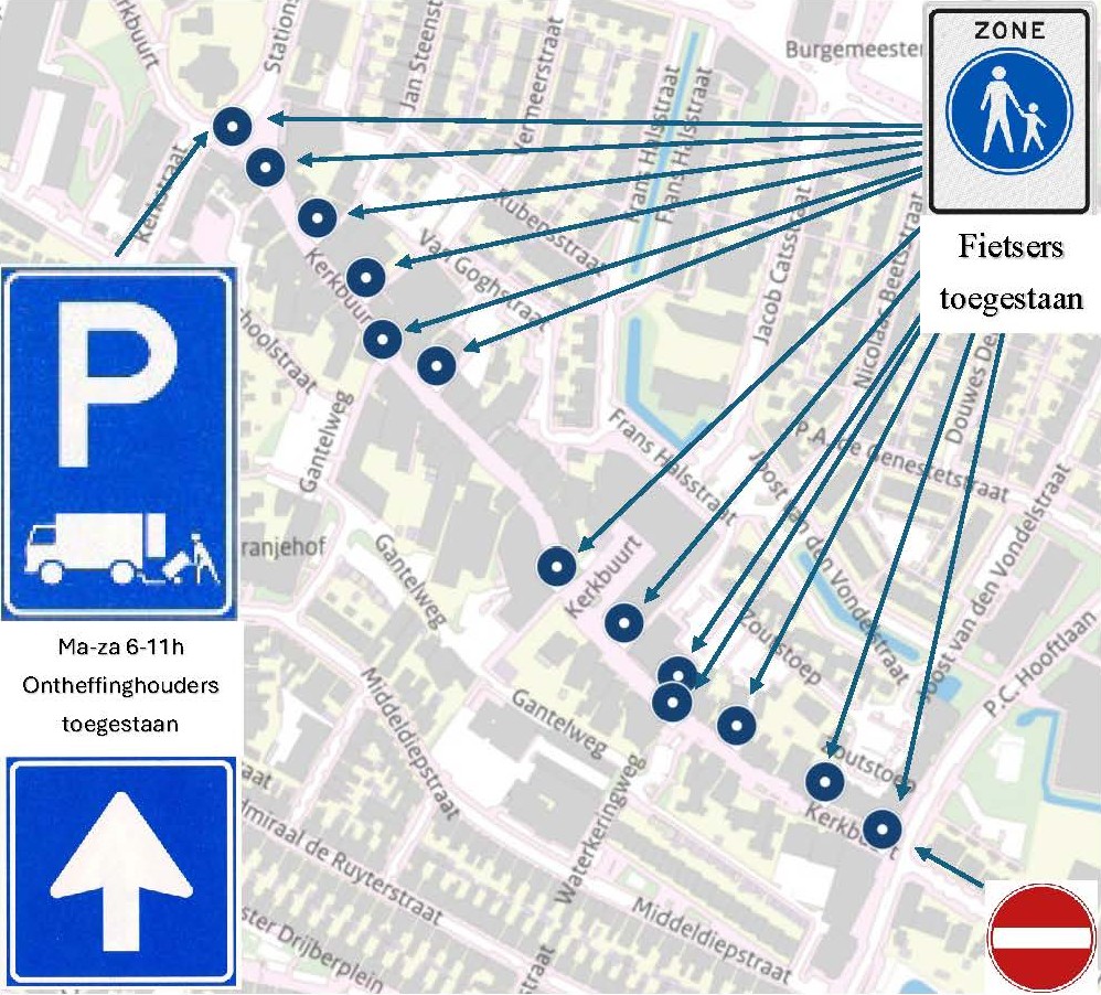 • dat de Kerkbuurt een voetgangerszone is waar fietsers- en ontheffingshouders zijn toegestaan, en er meerdere tijdsvenster zijn waarin laden en lossen is toegestaan;